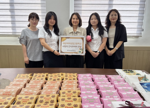 대성여자상업고등학교(교장 이상석) 창업동아리 "달달하당"과 "아트로테크"가 10일 북부종합사회복지관(관장 허성희)에 지역사회를 위한 따뜻한 나눔을 지원하며 세대 간의 의미 있는 교류를 실천했다.