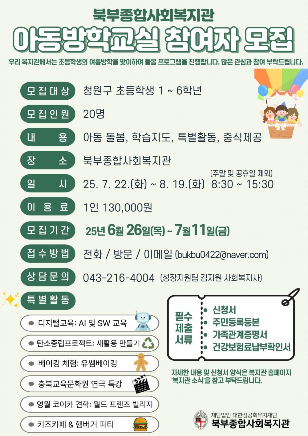 2025년 하계 아동방학교실 참여자 모집 안내