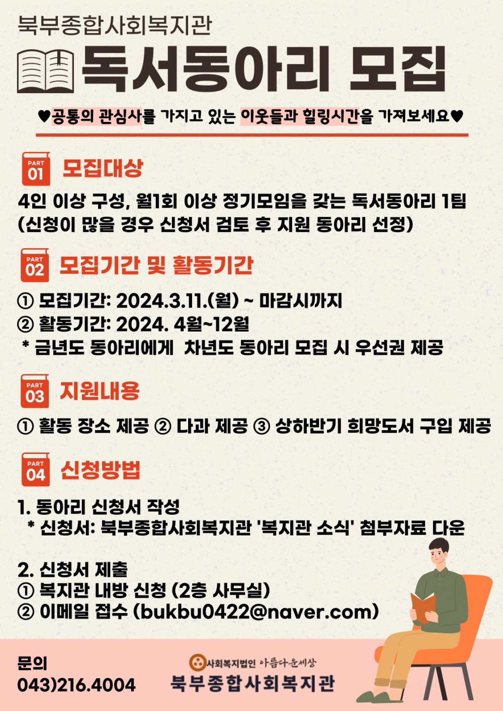 2024년 북부종합사회복지관 독서동아리 모집 안내
