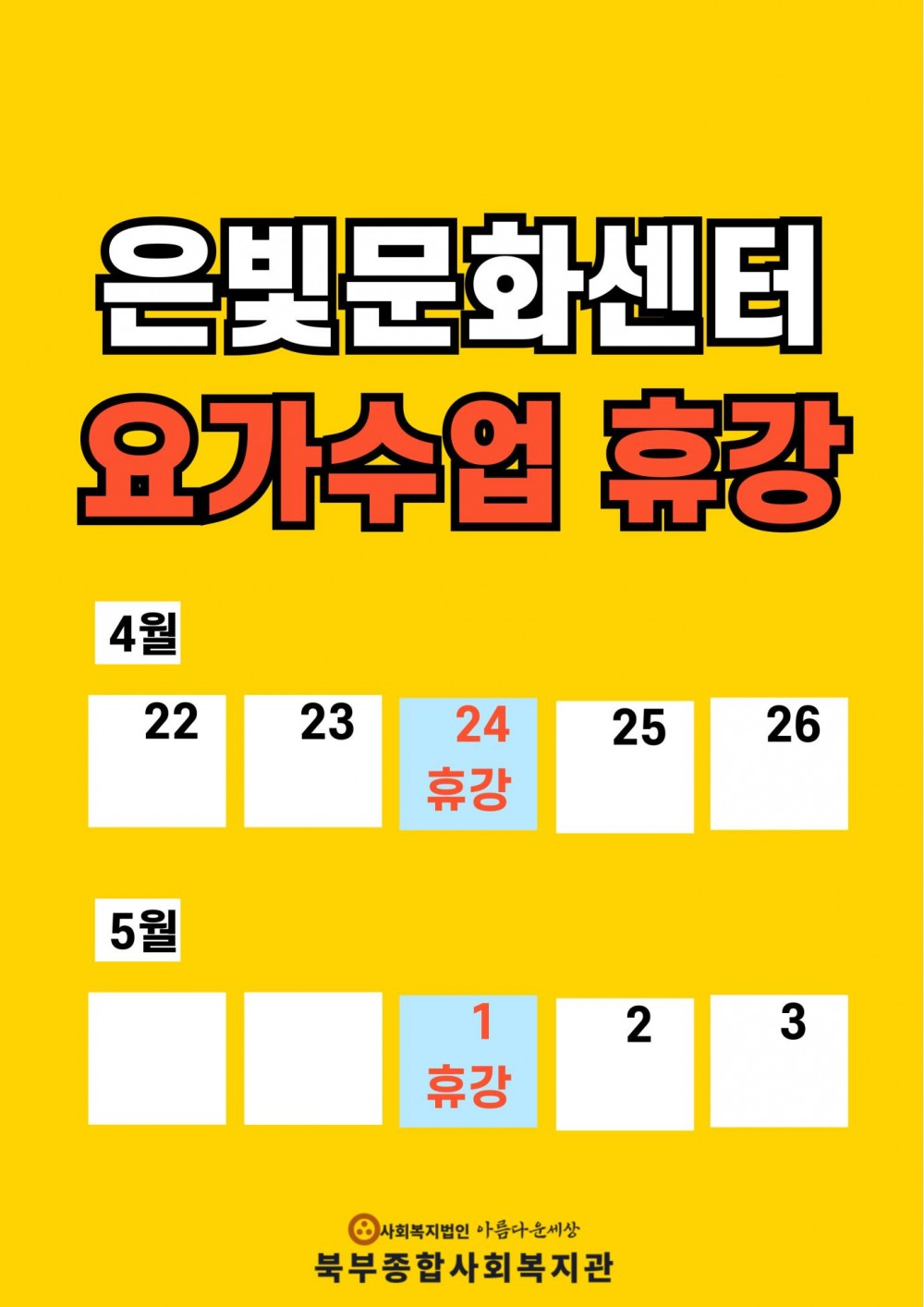 은빛문화센터 요가수업 휴강(4/24, 5/1)