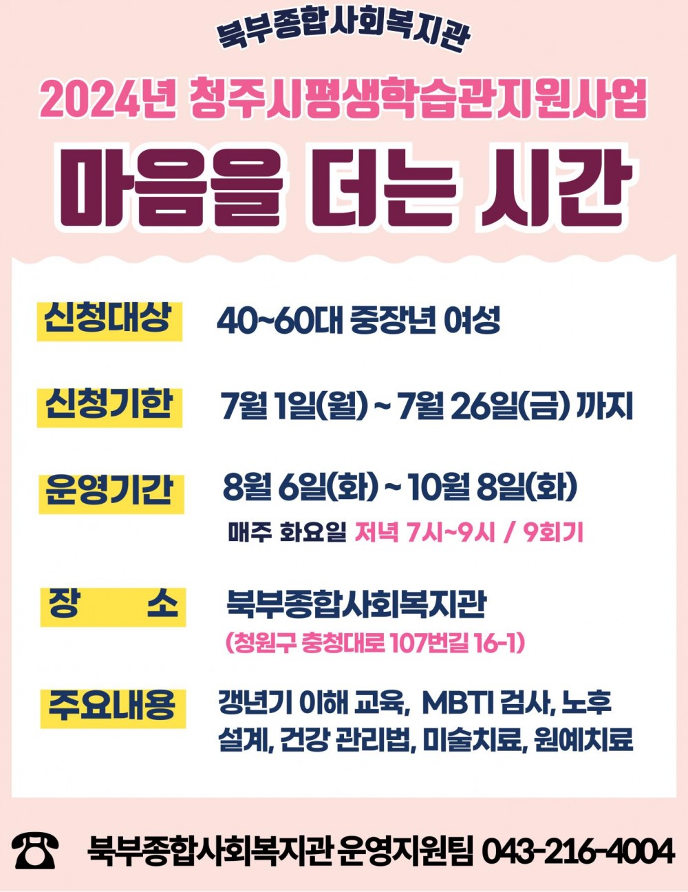 2024년 청주시평생학습관지원사업 <마음을 더는 시간> 참여자 모집