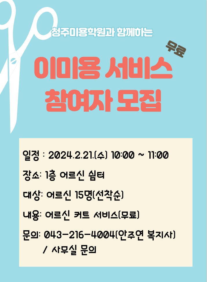 2024년 2월 북부종합사회복지관 어르신 이미용 서비스 참여자 모집