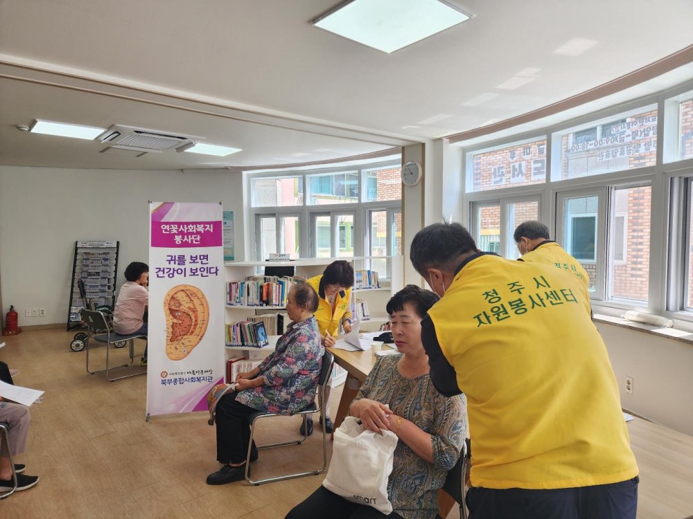 이혈봉사는 혈압 측정을 하고, 귀를 통해 건강을 확인하여 간단한 상담과 패치 부착을 진행합니다.