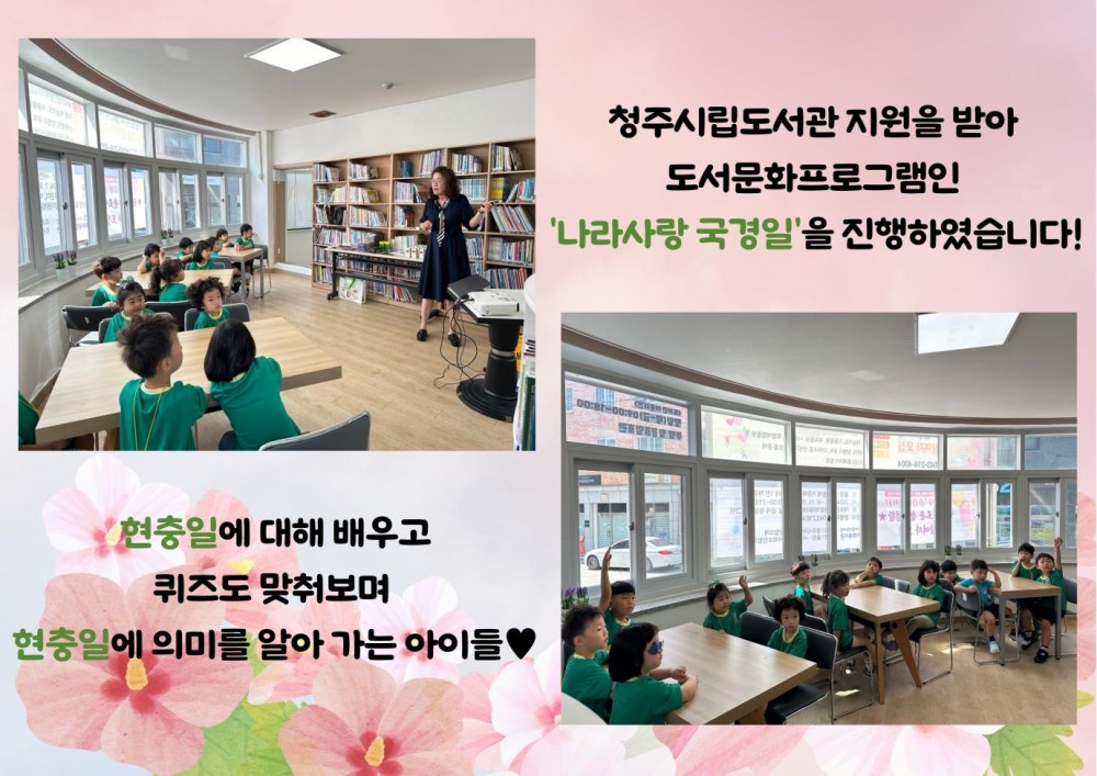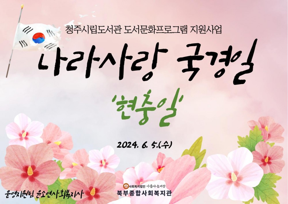 2024년 청주시립도서관 지원 사업 '나라사랑 국경일(현충일)' 페이지 정보 작성자 작성자 관리자 작성일작성일 2024.06.05 조회조회 173 본문 2024년 청주시립도서관 지원 사업 '나라사랑 국경일(현충일)' 이전글2024년 청주시립도서관 지원 사업 '나라사랑 국경일(제헌절)' 다음글2024년 '더 우아한 시니어의 일품 요리 교실' 8~9회기 진행(멘토-멘티 요리교실&지역사회 나눔활동, 종강) 목록