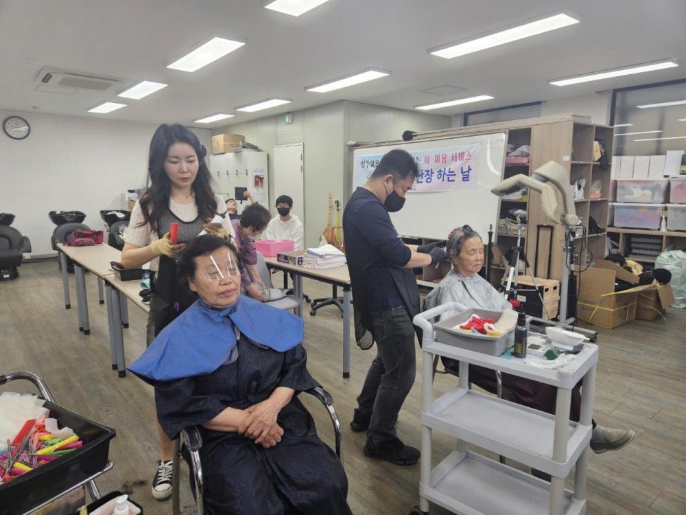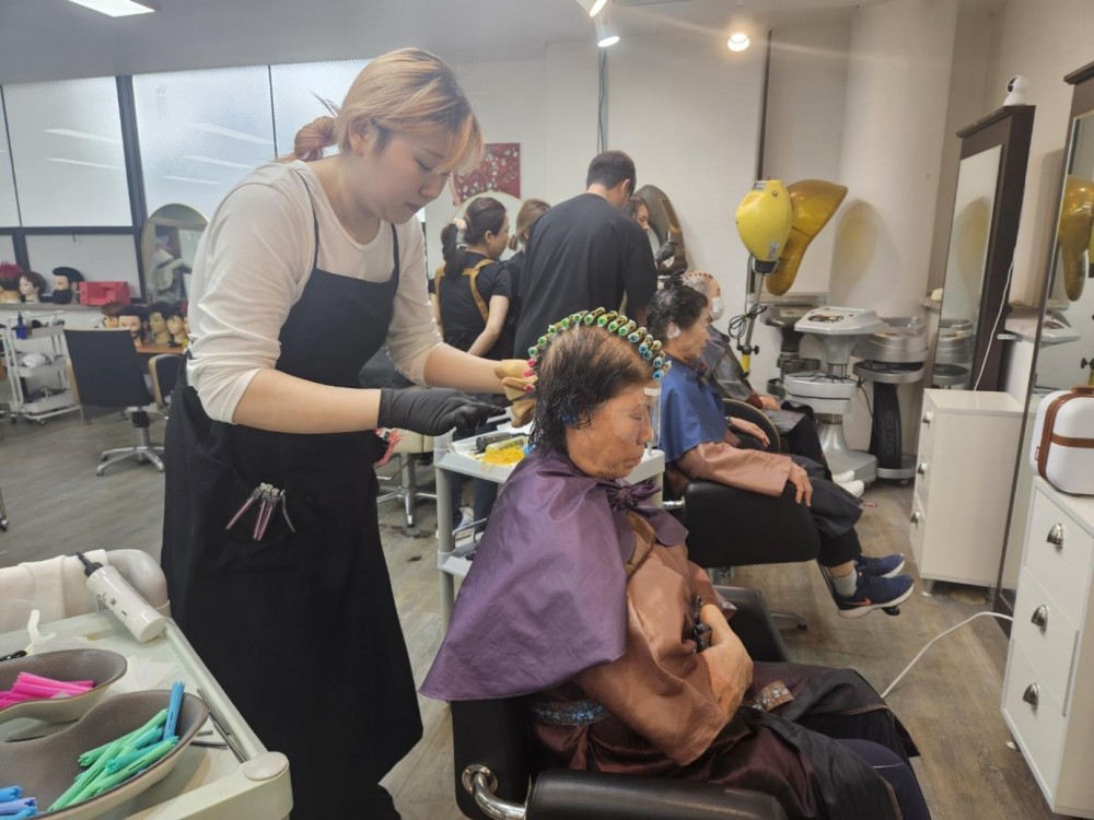 오늘 청주미용학원에서 어르신들에게 파마, 염색 서비스를 제공하여 어르신들께 새로운 자신감과 아름다움을 선사해주셨습니다.
