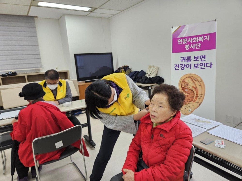 이혈봉사는 혈압 측정을 하고, 귀를 통해 건강을 확인하여 간단한 상담과 패치 부착을 진행합니다.