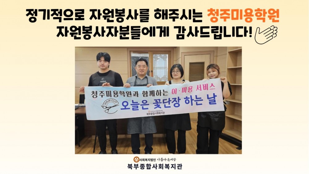 2024년 이미용 서비스 3회기 실시 페이지 정보 작성자 작성자 관리자 작성일작성일 -0001.11.30 조회조회 240 본문 2024년 이미용 서비스 3회기 실시 이전글2024년 제20기 보리수 은빛문화센터 방학식 다음글2024년 6월 면사랑DAY 목록