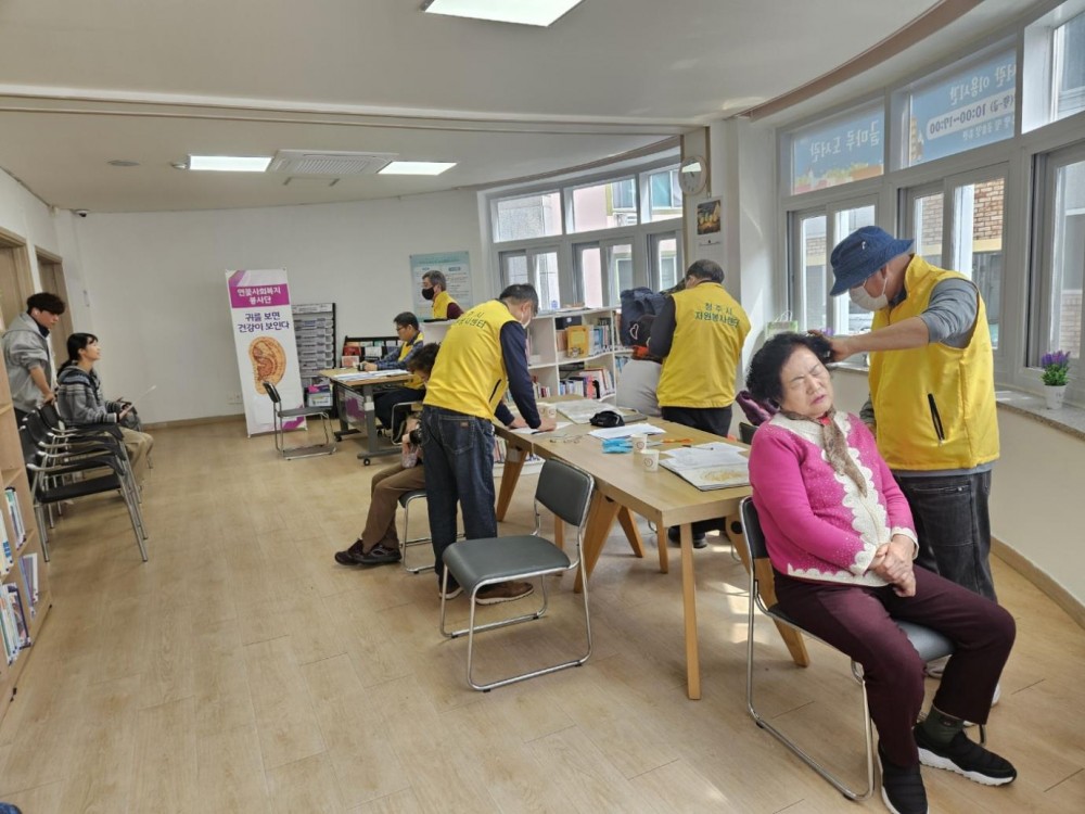 이혈봉사는 혈압 측정을 하고, 귀를 통해 건강을 확인하여 간단한 상담과 패치 부착을 진행합니다.