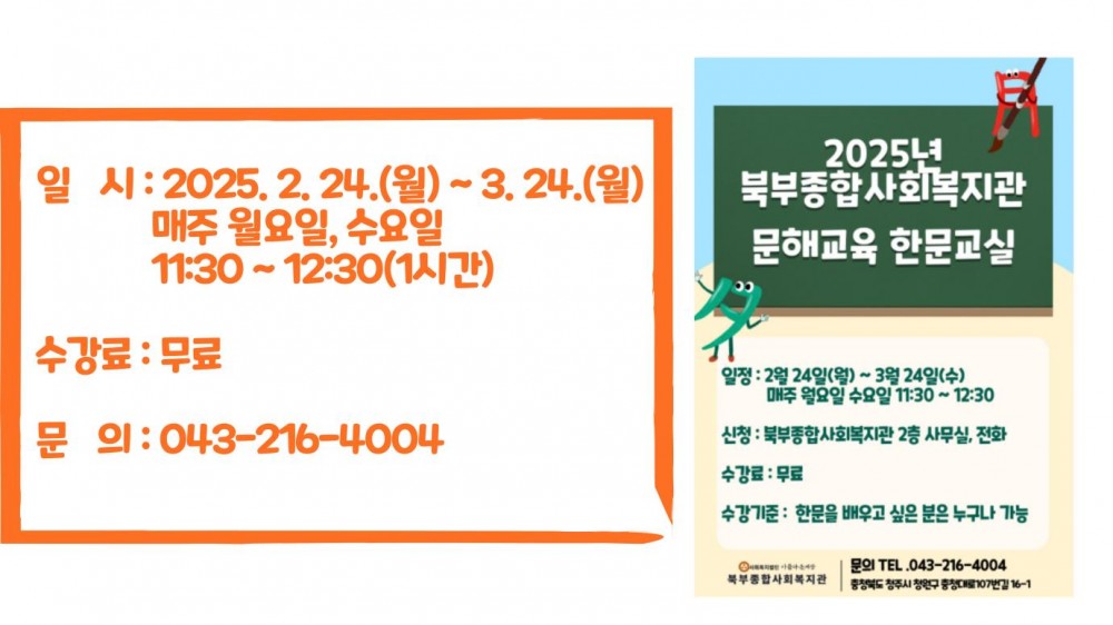 2025년 문해교육 한문교실 진행 페이지 정보 작성자 작성자 관리자 작성일작성일 2025.02.24 조회조회 196 본문 2025년 문해교육 한문교실 진행 이전글2025년 2월 면사랑데이 다음글2025년 디지털배움터 금융교육 진행 목록