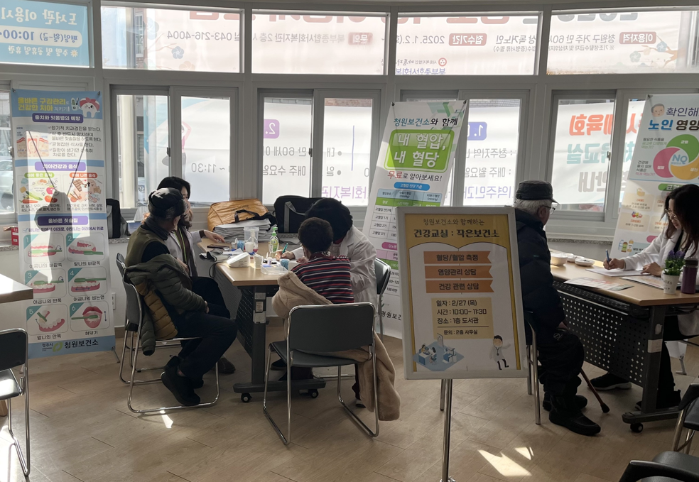 - 내용 : 청원보건소와 연계하여 지역 어르신을 대상으로 기초 건강검진 및 구강관련 상담, 영양관리 상담 진행