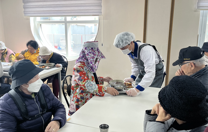 (주)면사랑 측의 후원음식과 봉사를 통해 따뜻한 급식을 무료로 제공하고 있습니다.