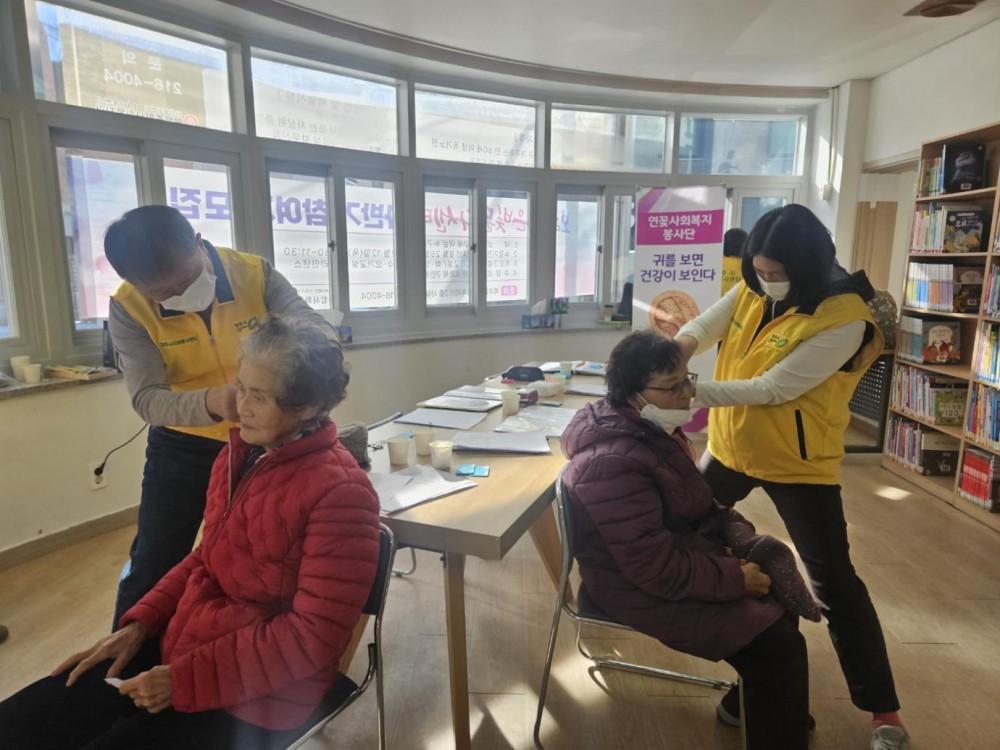 이혈봉사는 혈압 측정을 하고, 귀를 통해 건강을 확인하여 간단한 상담과 패치 부착을 진행합니다.