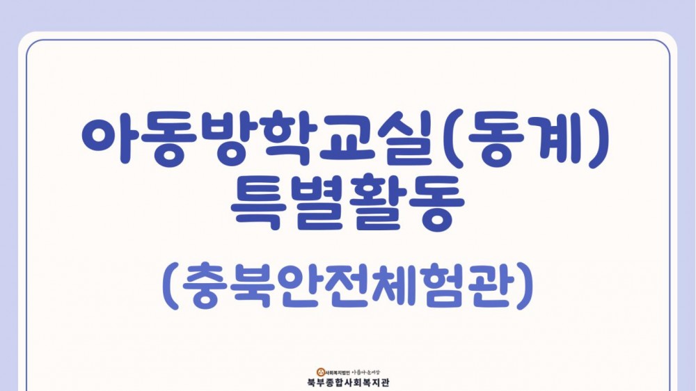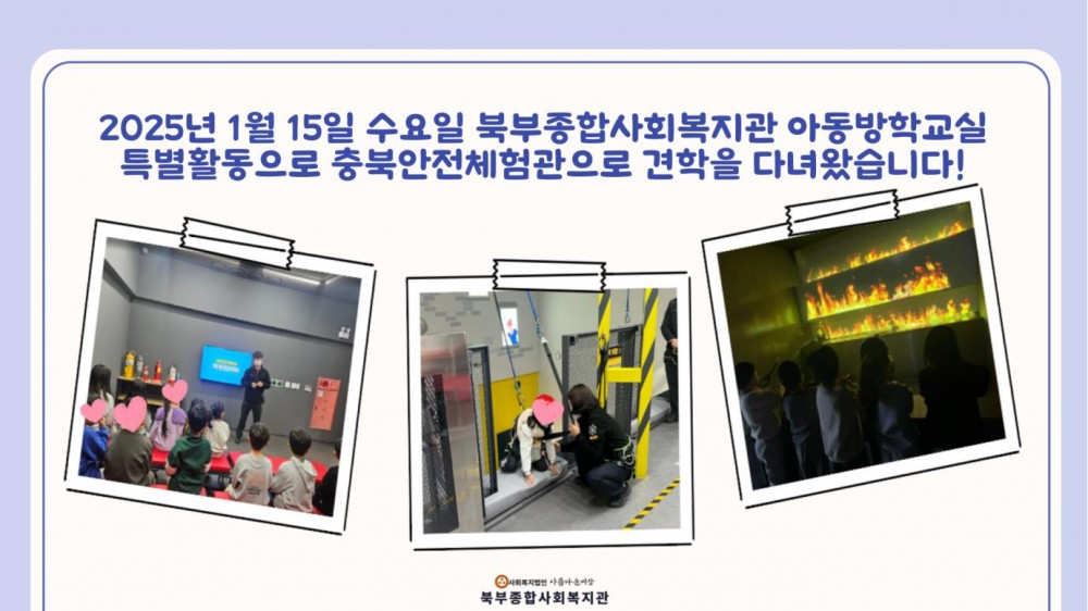 2025년 아동방학교실(동계) 특별활동 (충북안전체험관) 페이지 정보 작성자 작성자 관리자 작성일작성일 2025.01.15 조회조회 193 본문 2025년 아동방학교실(동계) 특별활동 (충북안전체험관) 이전글청주미용학원 · 착한미용실 업무협약식 다음글2025년 아동방학교실(동계) 특별활동 (영화시청 및 과자파티) 목록