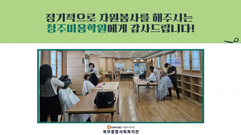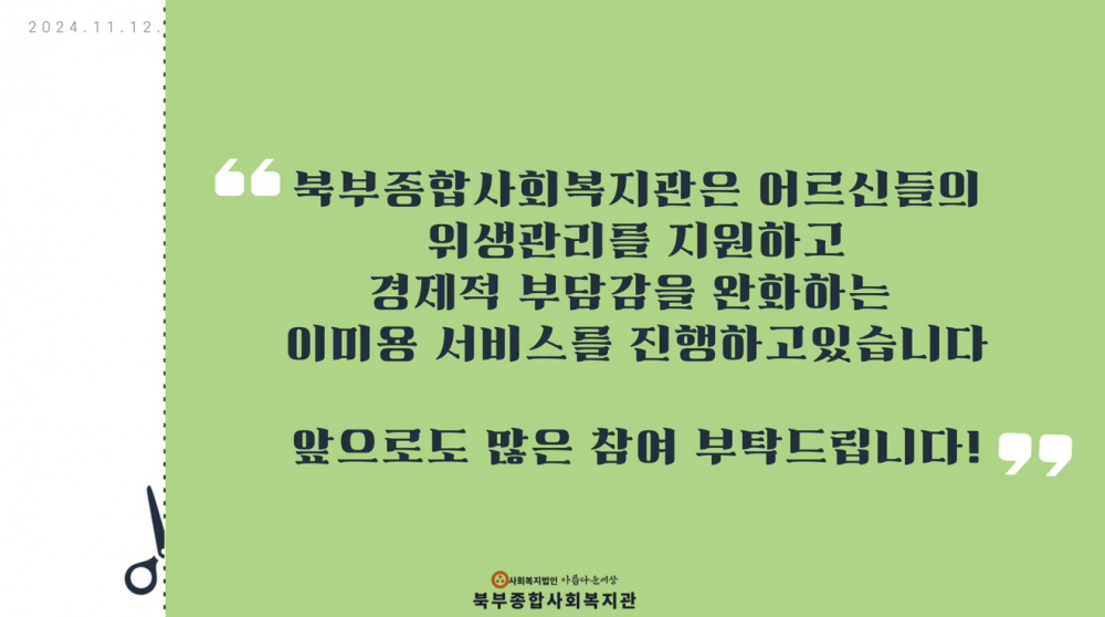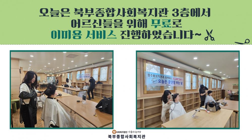 미용 서비스 5회기 실시 페이지 정보 작성자 작성자 관리자 작성일작성일 2024.11.12 조회조회 204 본문 미용 서비스 5회기 실시 이전글한글문해교실 종강 다음글2024. 환경미화활동 목록