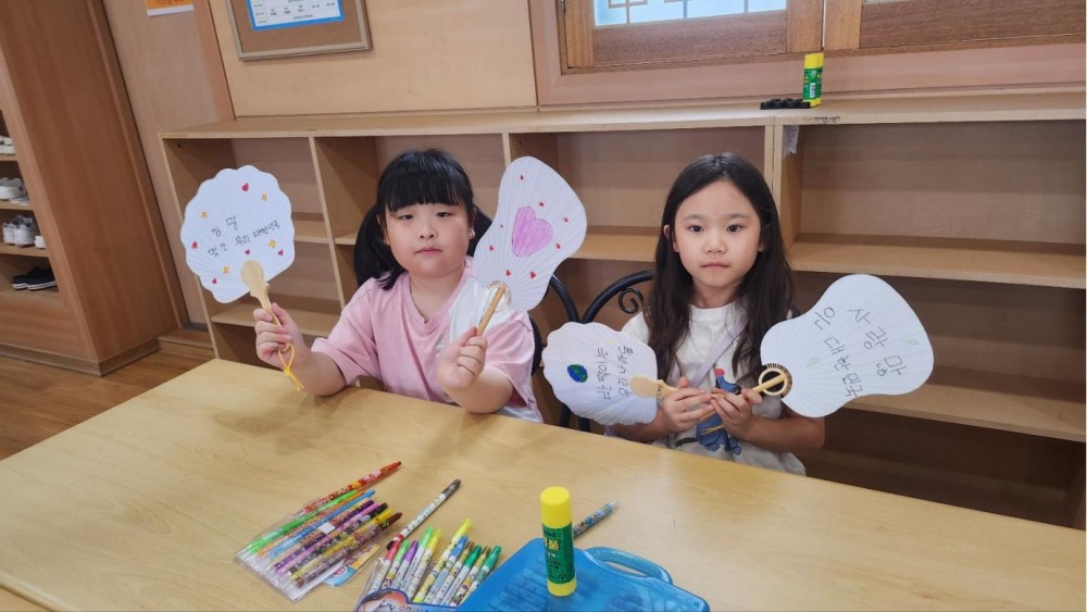 학생들이 만든 부채 및 비누를 경노식당 이용 어르신들께 나눠드렸습니다.