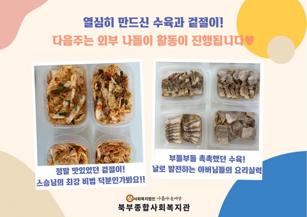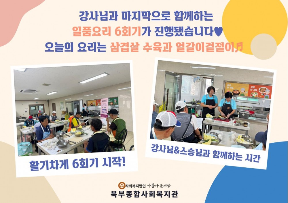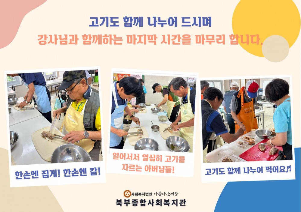 2024년 '더 우아한 시니어의 일품 요리 교실' 6회기 진행(수육&얼갈이겉절이) 페이지 정보 작성자 작성자 관리자 작성일작성일 2024.06.28 조회조회 232 본문 2024년 '더 우아한 시니어의 일품 요리 교실' 6회기 진행(수육&얼갈이겉절이) 이전글2024년 '더 우아한 시니어의 일품 요리 교실' 7회기 진행(지역사회 나들이) 다음글2024년 제20기 보리수 은빛문화센터 방학식 목록