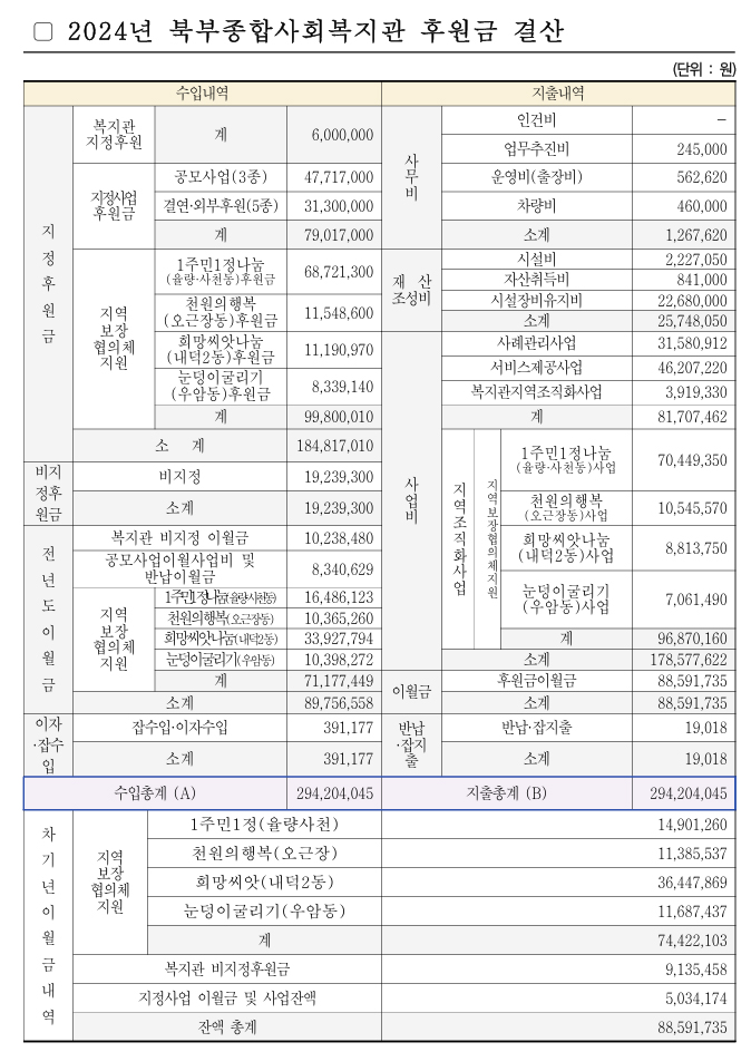 [공시]2024년도 북부종합사회복지관 세입세출결산 및 후원금 결산 페이지 정보 작성자 작성자 관리자 작성일작성일 2025.03.28 조회조회 121 본문 첨부파일 [공시]2024년도 북부종합사회복지관 세입세출결산 및 후원금 결산 이전글북부종합사회복지관 운영법인 변경 안내(2025.4.1일자) 다음글2025년 북부종합사회복지관 예산 공시 목록 댓글목록 0 댓글목록 등록된 댓글이 없습니다.