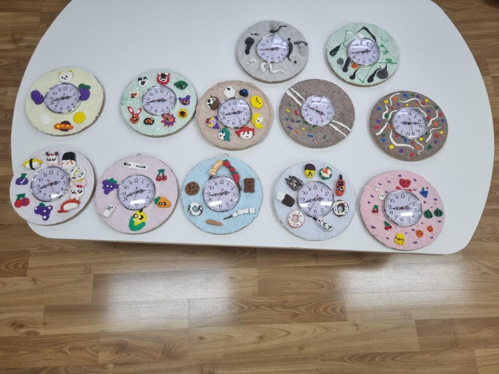 아동들이 숨은 아이클레이 실력을 발휘해 멋지게 원형시계를 만들었습니다!