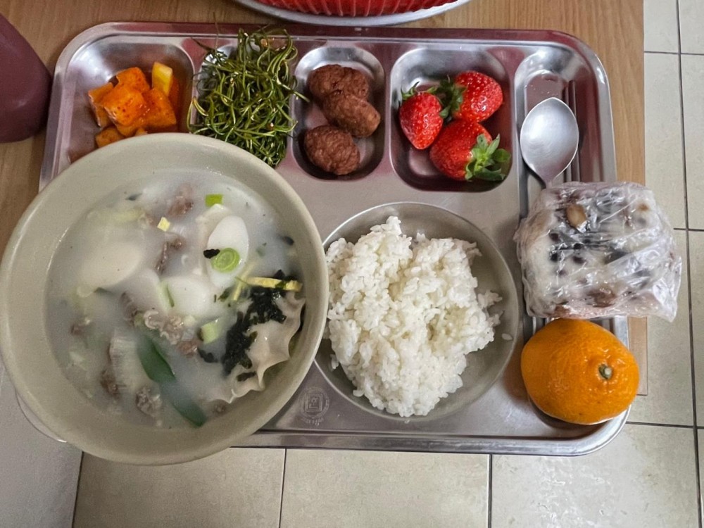 금일 내덕1동 바르게살기 위원회에서 경로식당 어르신들을 위해 맛있는 떡국과 직접 빚으신 만두, 귤, 시루떡을 준비해주셨습니다.